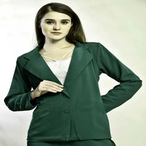 Name : Bitsy Owl Women's Formal 3 Piece Green Co-Ord Set || Solid Relaxed Fit Full Sleeve Top & Bottom Set for Girls || Lapel Collar Blazer, Short Pant, and Inner Three-Piece Set for Casual and Party Wear Pack of 1 S M L XL Under 899