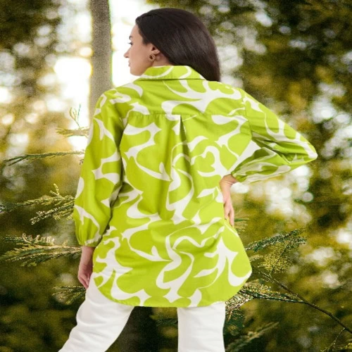 Name : Bitsy Owl Women Cotton Blend Printed Button Front Parrot Green Long Shirt Collared Neck Dress || Long Sleeves Summer Oversized Shirt for Office Wear || Semi Formal Shirt Pack of 1 S M L XL under 600