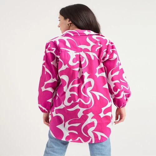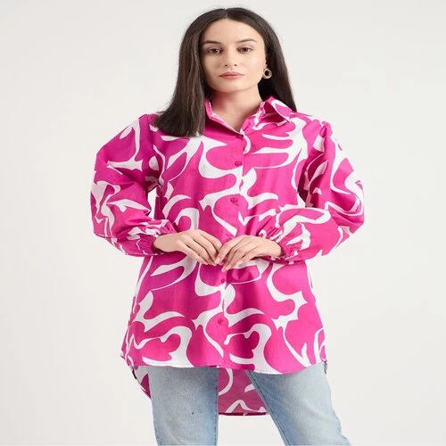 Name : Bitsy Owl Women Cotton Blend Printed Button Front Pink Long Shirt Collared Neck Dress || Long Sleeves Summer Oversized Shirt for Office Wear || Semi Formal Shirt Pack of 1 S M L XL under 600