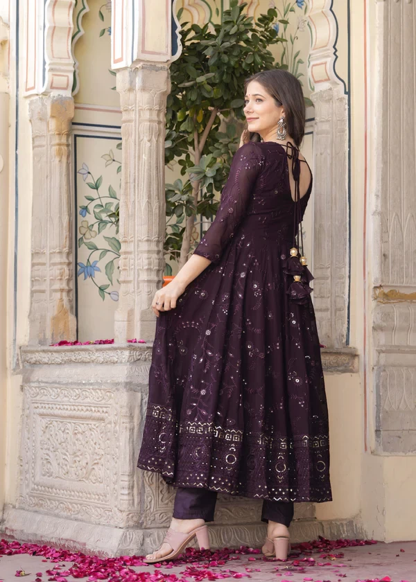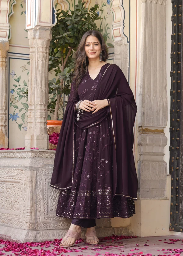 Anarkali Ethnic Motifs Embroidered Sequined Kurta & Trousers With Dupatta || JMI