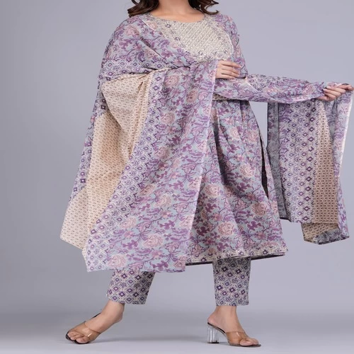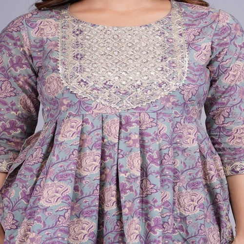 Beautiful Flower Print on Kurti. Coding Zari, Sequence Work Embroidery and Samosa Lace Work on Neck, Sleeves And Sides