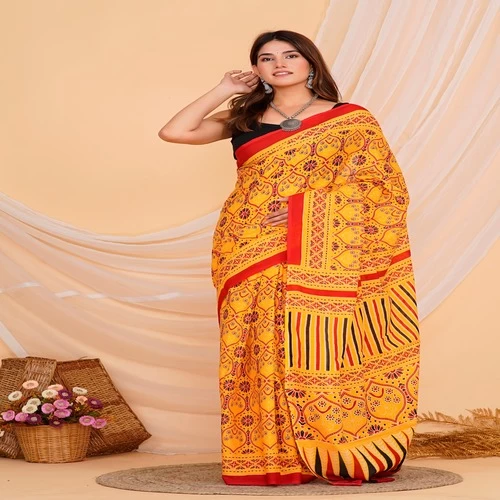 Hand Printed Mul Cotton Saree || V9LW5M