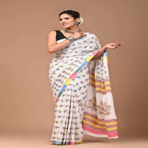 Hand Printed Mul Cotton Saree || Y5WMBC