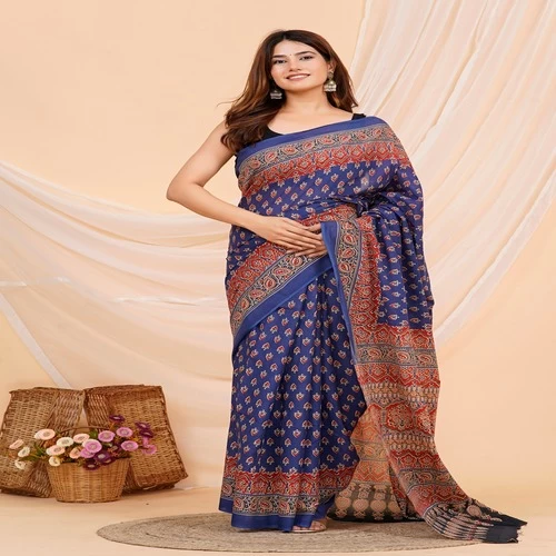 • FABRIC : Cotton Mulmul Saree with Cotton Mulmul fabric Blouse pc || Work: Shibori Tie Dye Print,Printed,Block print,Ajrak print, Traditional Ethnic Look.