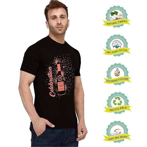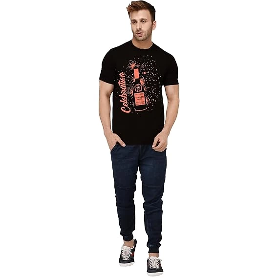 London Hills Men's Regular Fit Celebration Slogan Printed Black T-Shirt || LH713