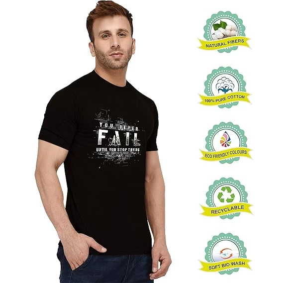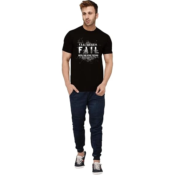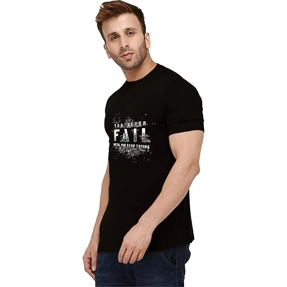 London Hills Men's Regular Fit Half Sleeve Never Fail Slogan Printed Black T-Shi