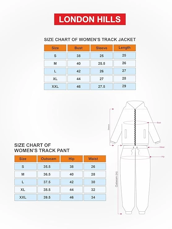 • This Women’s Track Suit come in different colors with five variant sizes S-M-L-XL-XXL, note: - Please refer to the size chart image for reference and choose a best fit for you.