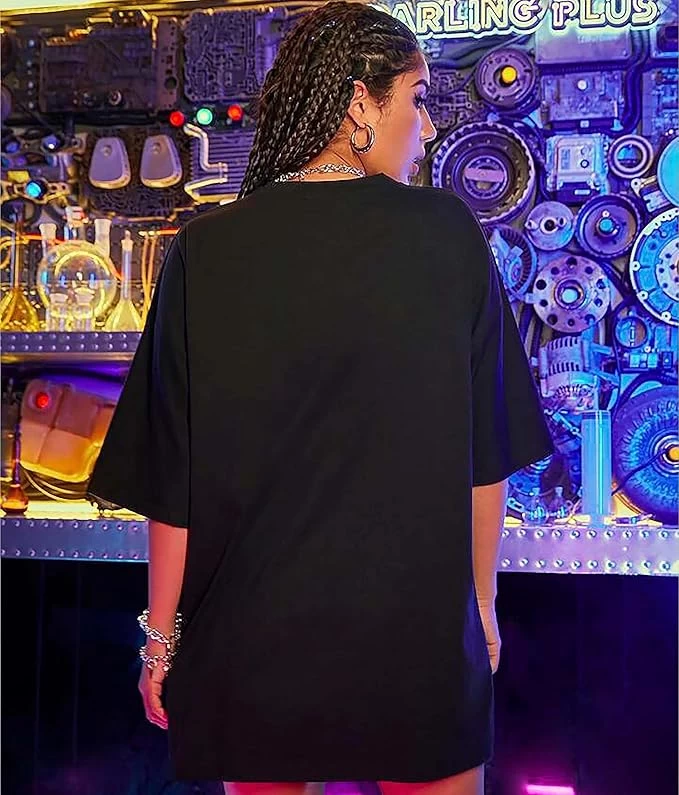 London Hills Women's Casual Printed Round Neck, Oversized Longline Drop Shoulder