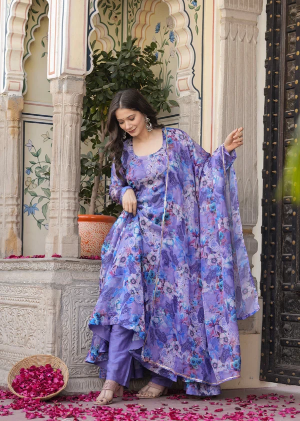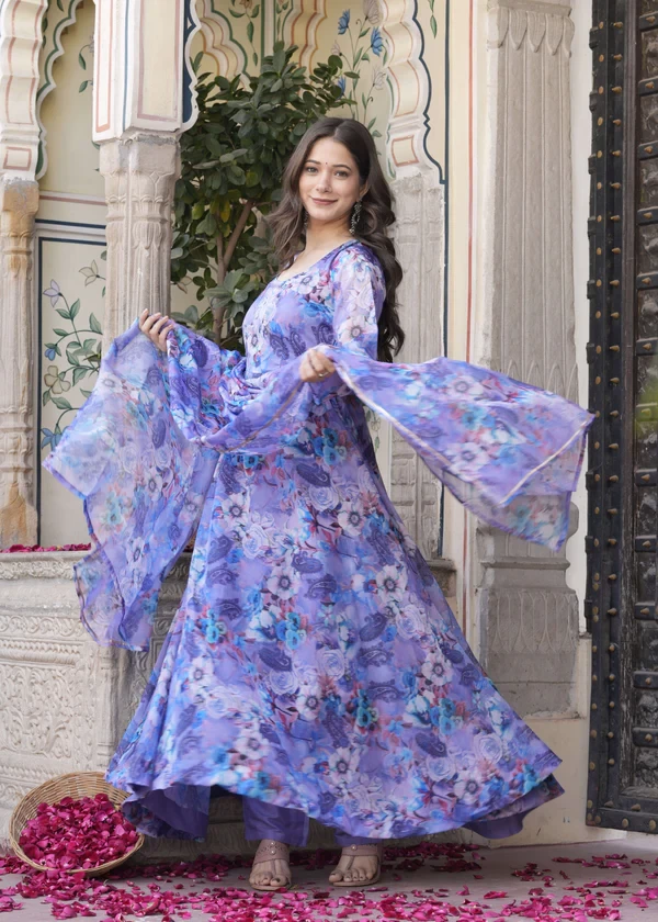 Anarkali Ethnic Floral Print Kurta & Trousers With Dupatta || 4JUBH9
