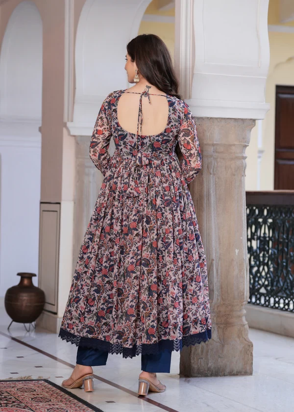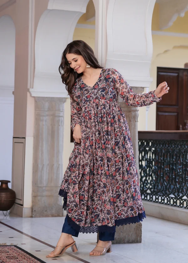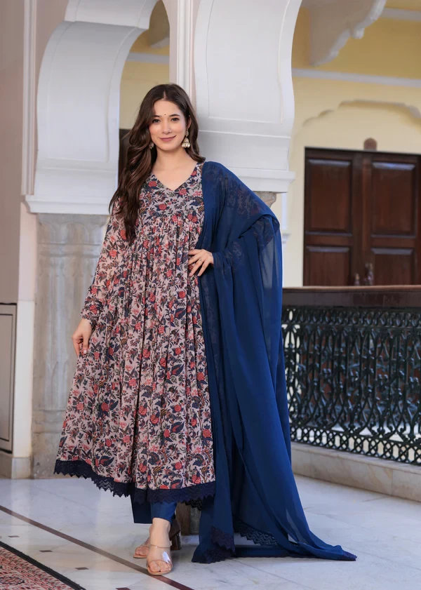 Anarkali Ethnic Floral Print Kurta & Trousers With Dupatta || 4JUBH9
