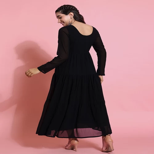 Women Black Georgette Embroidery Tiered Anarkali Kurta || VLP54P