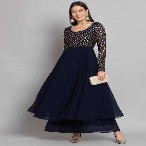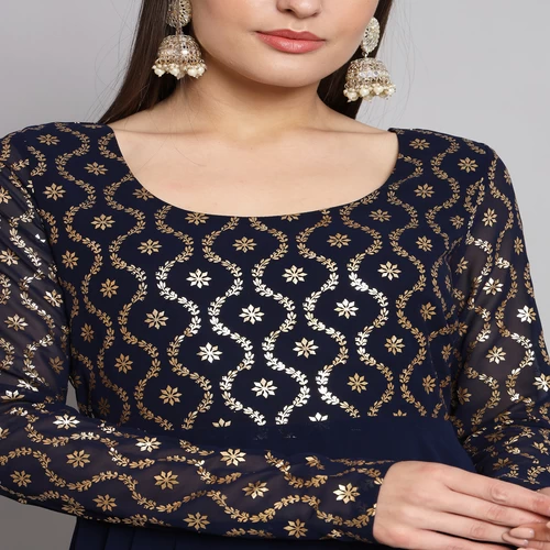 Women Blue Georgette Foil print Anarkali Kurta || EFBC47