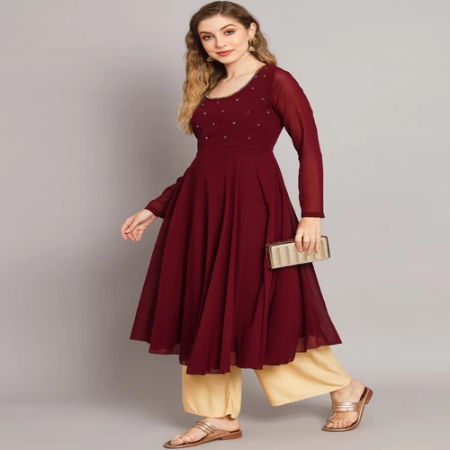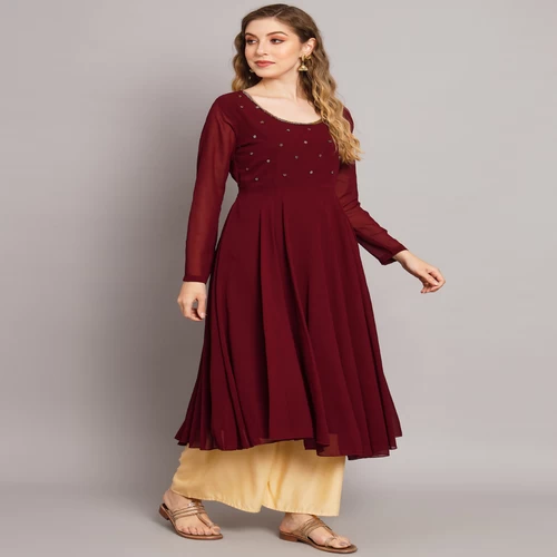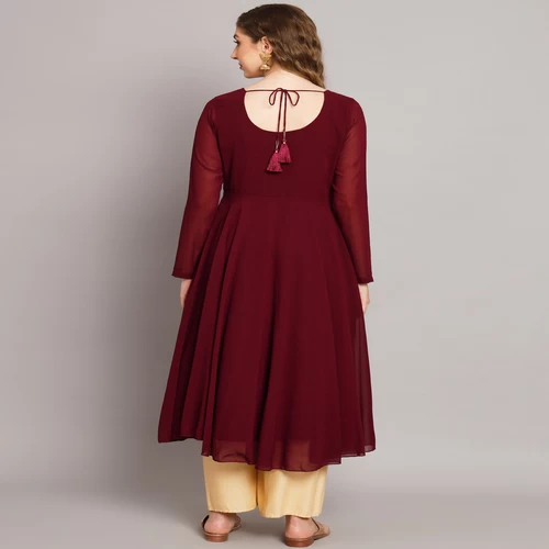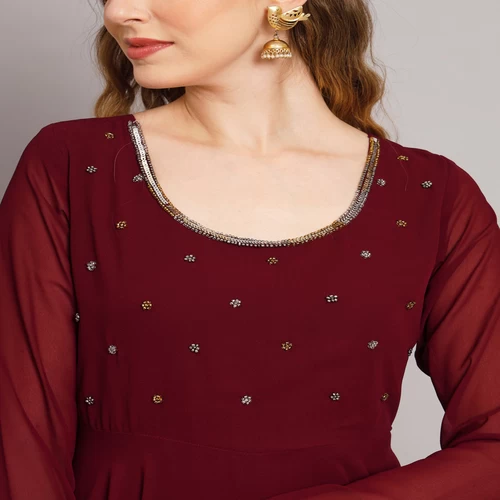 Women Maroon Georgette Hand Embroidery Anarkali Kurta || QP53VK