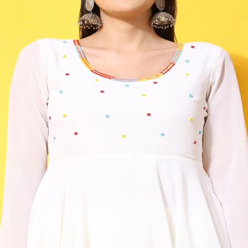 Women Off-White Georgette Hand Embroidery Anarkali Kurta || 38JMWH