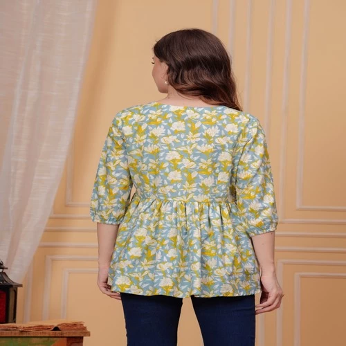 or entirely from cotton fabric. Known for its breathability, and versatility, cotton top come in various styles. The fabric's natural fibers make it soft against the skin and allow for good airflow, making cotton ideal for both casual wear and more formal occasions depending on their design and detailing. top for summer, summer top, crop top, top for woman/girls, styles top, designer top, western wear top, casual top, summer top for girls, grey top, v neck top, dress for girls, long top, party wear top, western wear to