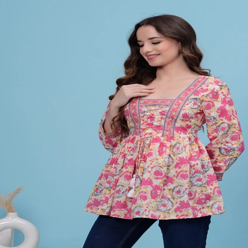 or entirely from cotton fabric. Known for its breathability, and versatility, cotton top come in various styles. The fabric's natural fibers make it soft against the skin and allow for good airflow, making cotton ideal for both casual wear and more formal occasions depending on their design and detailing. top for summer, summer top, crop top, top for woman/girls, styles top, designer top, western wear top, casual top, summer top for girls, grey top, v neck top, dress for girls, long top, party wear top, western wear to