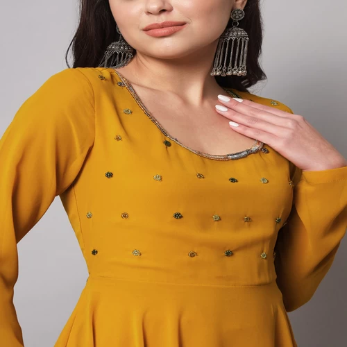 Women Yellow Georgette Hand Embroidery Anarkali Kurta || UP7DNN