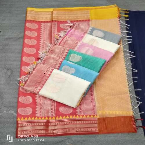 Banarasi cotton silk plane Saree with zari border || W667H2