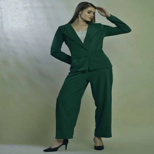 Name : Bitsy Owl Women's Formal 3 Piece Green Co-Ord Set || Solid Relaxed Fit Full Sleeve Top & Bottom Set for Girls || Lapel Collar Blazer, Short Pant, and Inner Three-Piece Set for Casual and Party Wear Pack of 1 S M L XL Under 899