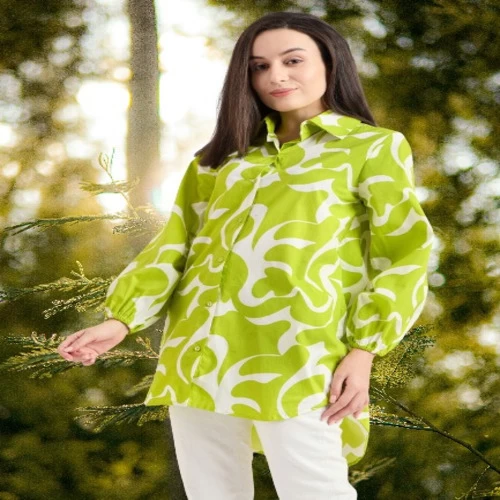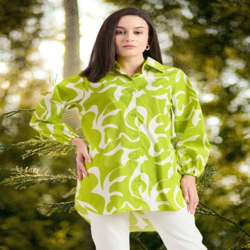 Name : Bitsy Owl Women Cotton Blend Printed Button Front Parrot Green Long Shirt Collared Neck Dress || Long Sleeves Summer Oversized Shirt for Office Wear || Semi Formal Shirt Pack of 1 S M L XL under 600