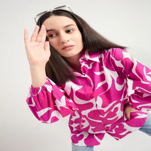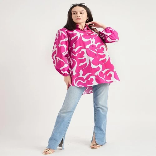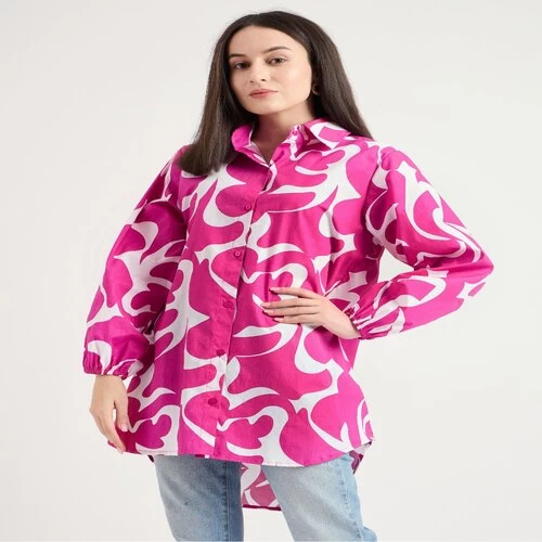 Name : Bitsy Owl Women Cotton Blend Printed Button Front Pink Long Shirt Collared Neck Dress || Long Sleeves Summer Oversized Shirt for Office Wear || Semi Formal Shirt Pack of 1 S M L XL under 600