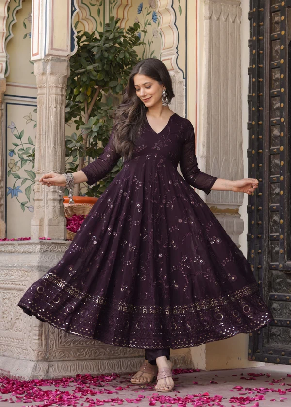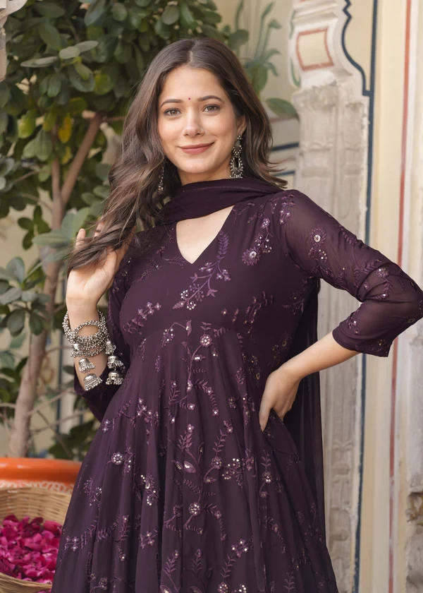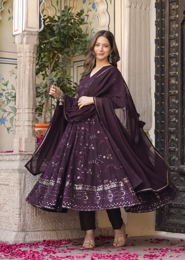 Anarkali Ethnic Motifs Embroidered Sequined Kurta & Trousers With Dupatta || JMI