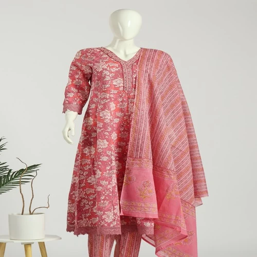 Cotton Anarkali Kurti Pant Dupatta Set