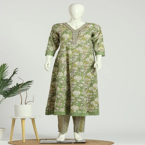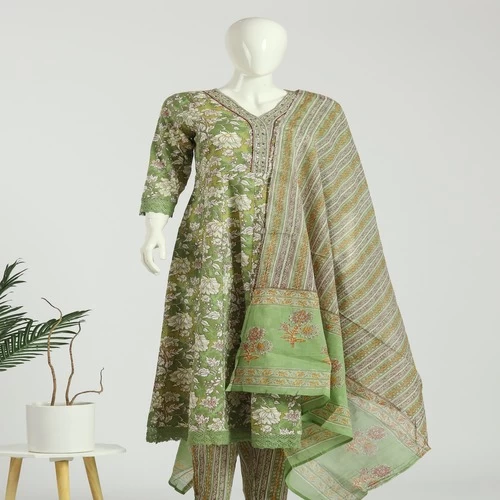 Cotton Anarkali Kurti Pant Dupatta Set