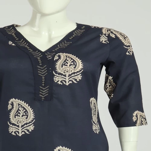 Beautiful Floral Print on Kurti with Hand Work on Neck.