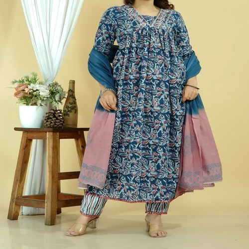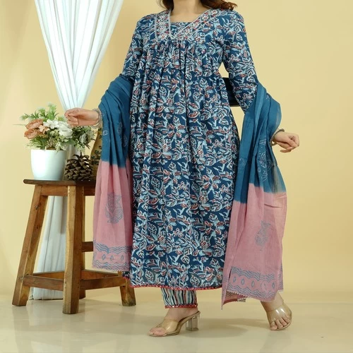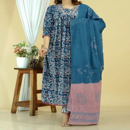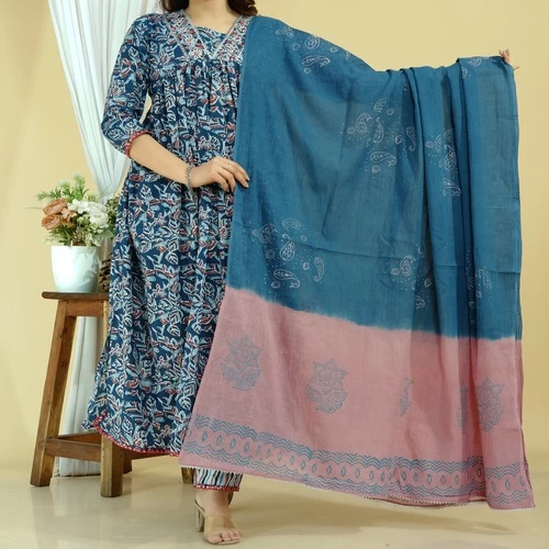 Cotton Kurti Pant Dupatta Set