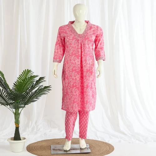 Beautiful Floral Print on Kurti with Embroidery Work on Neck and Sleeves.