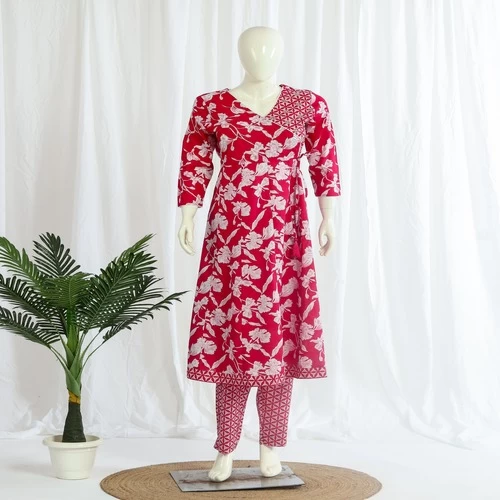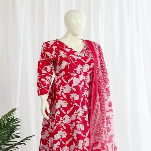 Cotton Angrakha Gown Pant Dupatta Set