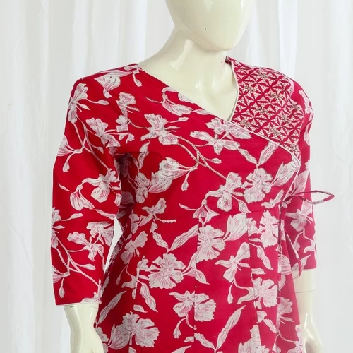 Beautiful Floral Print on Kurti with Hand Work on Neck