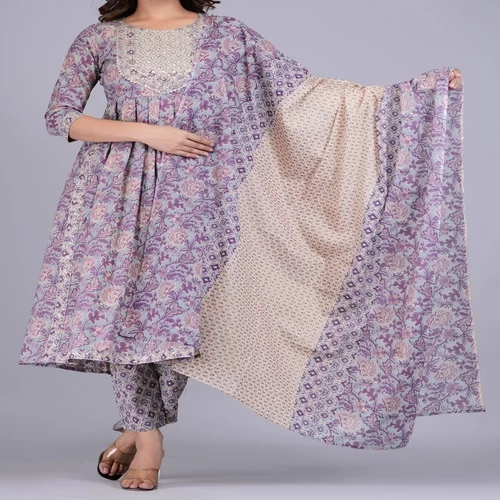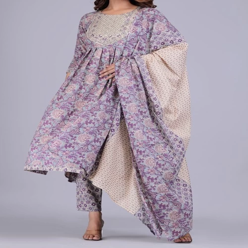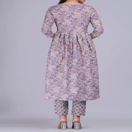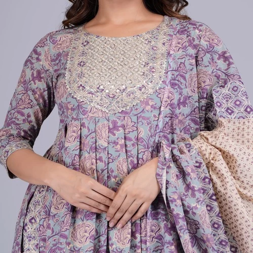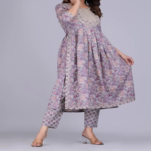 Beautiful Flower Print on Kurti. Coding Zari, Sequence Work Embroidery and Samosa Lace Work on Neck, Sleeves And Sides