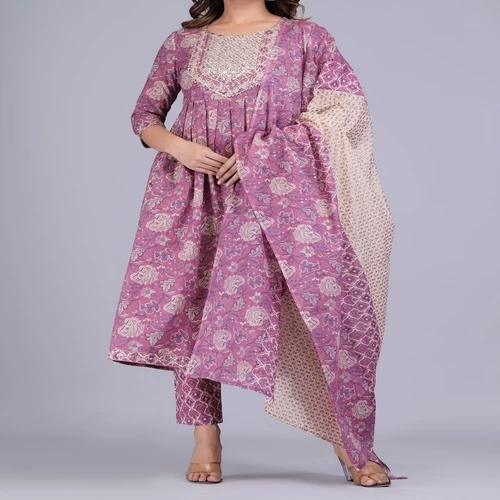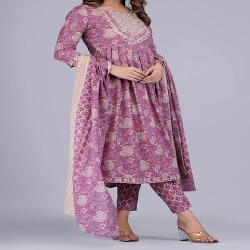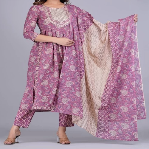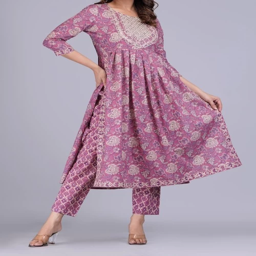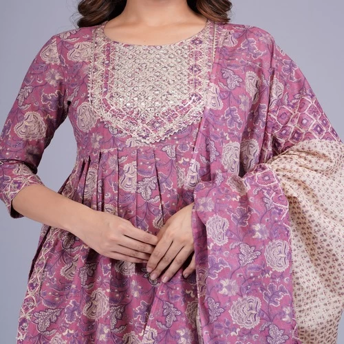Beautiful Flower Print on Kurti. Coding Zari, Sequence Work Embroidery and Samosa Lace Work on Neck, Sleeves And Sides