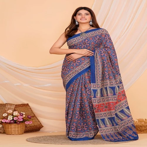 • FABRIC : Cotton Mulmul Saree with Cotton Mulmul fabric Blouse pc || Work: Shibori Tie Dye Print,Printed,Block print,Ajrak print, Traditional Ethnic Look.