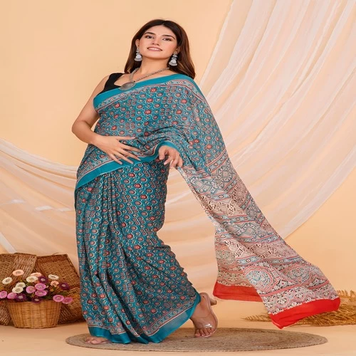 • FABRIC : Cotton Mulmul Saree with Cotton Mulmul fabric Blouse pc || Work: Shibori Tie Dye Print,Printed,Block print,Ajrak print, Traditional Ethnic Look.