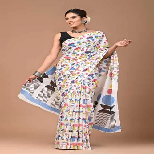 • FABRIC : Cotton Mulmul Saree with Cotton Mulmul fabric Blouse pc || Work: Shibori Tie Dye Print,Printed,Block print,Ajrak print, Traditional Ethnic Look.