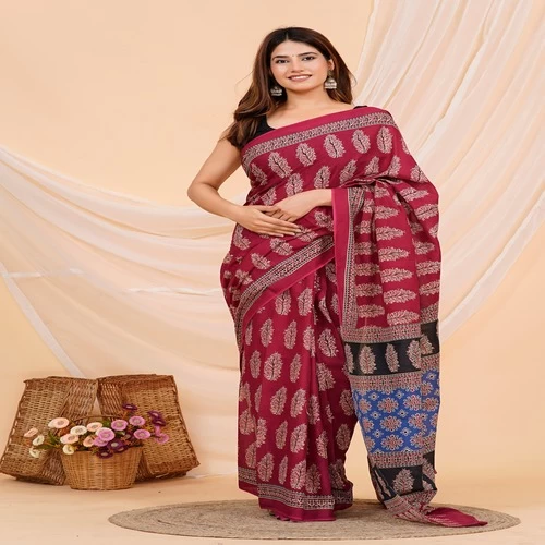 • FABRIC : Cotton Mulmul Saree with Cotton Mulmul fabric Blouse pc || Work: Shibori Tie Dye Print,Printed,Block print,Ajrak print, Traditional Ethnic Look.