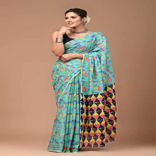 Hand Printed Mul Cotton Saree || V9LW5M