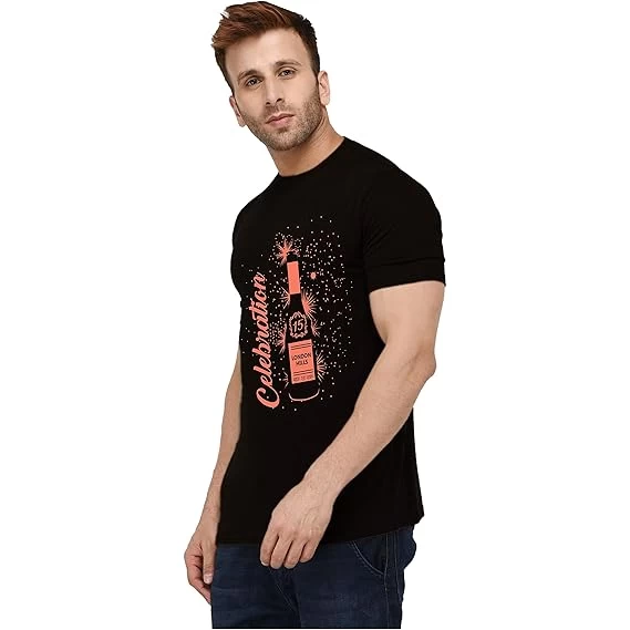 London Hills Men's Regular Fit Celebration Slogan Printed Black T-Shirt || LH713