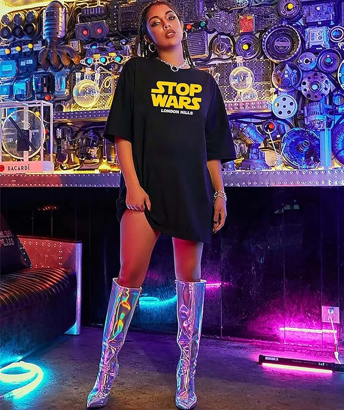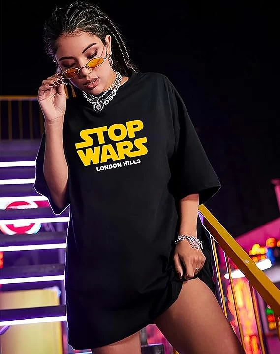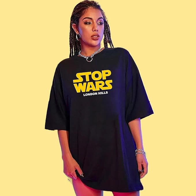 London Hills Women's Casual Printed Round Neck, Oversized Longline Drop Shoulder