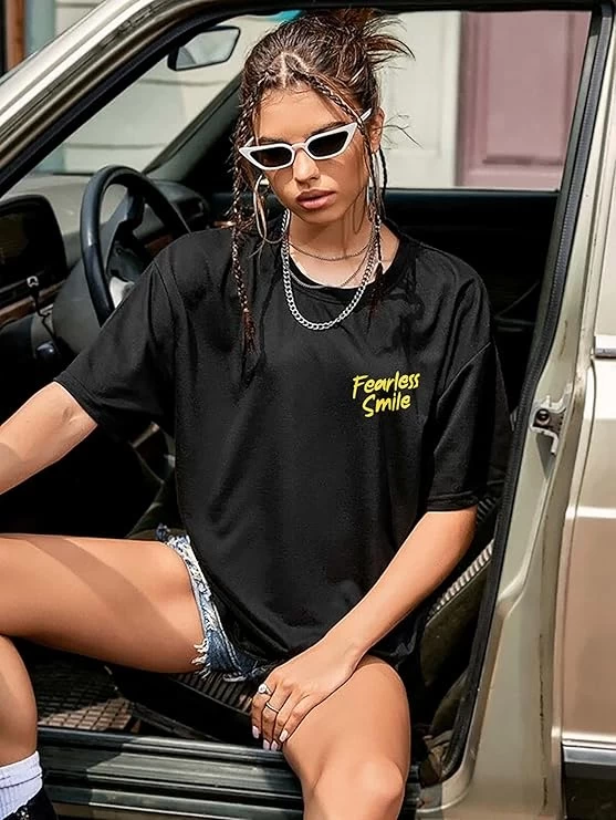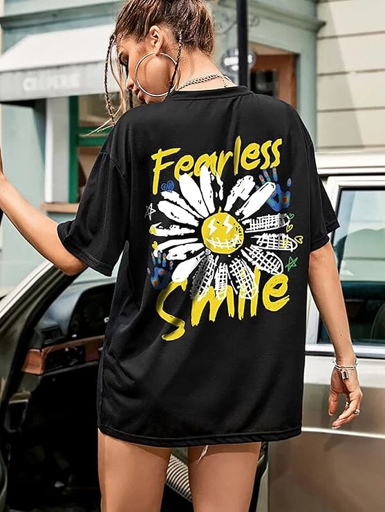 London Hills Women's Casual Printed Round Neck, Oversized Longline Drop Shoulder