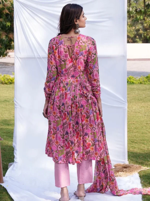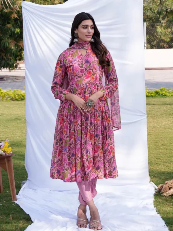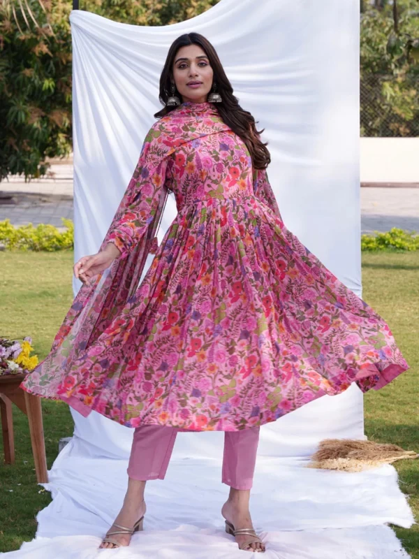 Anarkali Ethnic Floral Print Kurta & Trousers With Dupatta || 4JUBH9