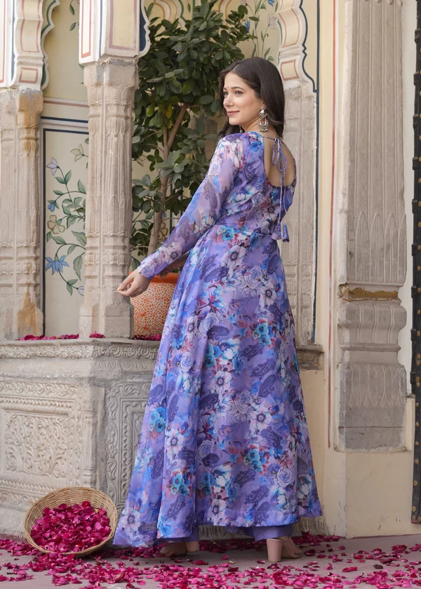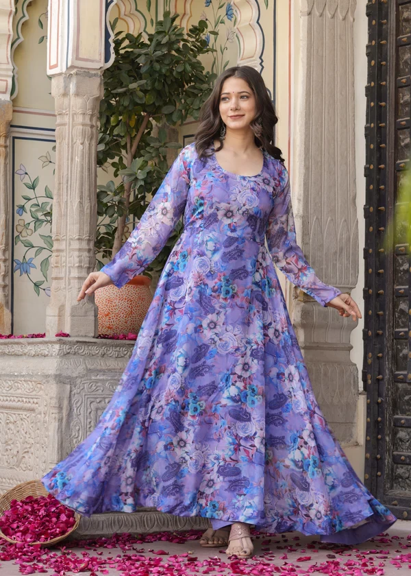 Anarkali Ethnic Floral Print Kurta & Trousers With Dupatta || BL0S5Q