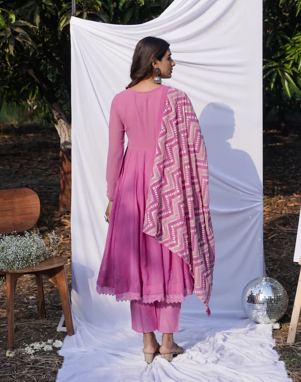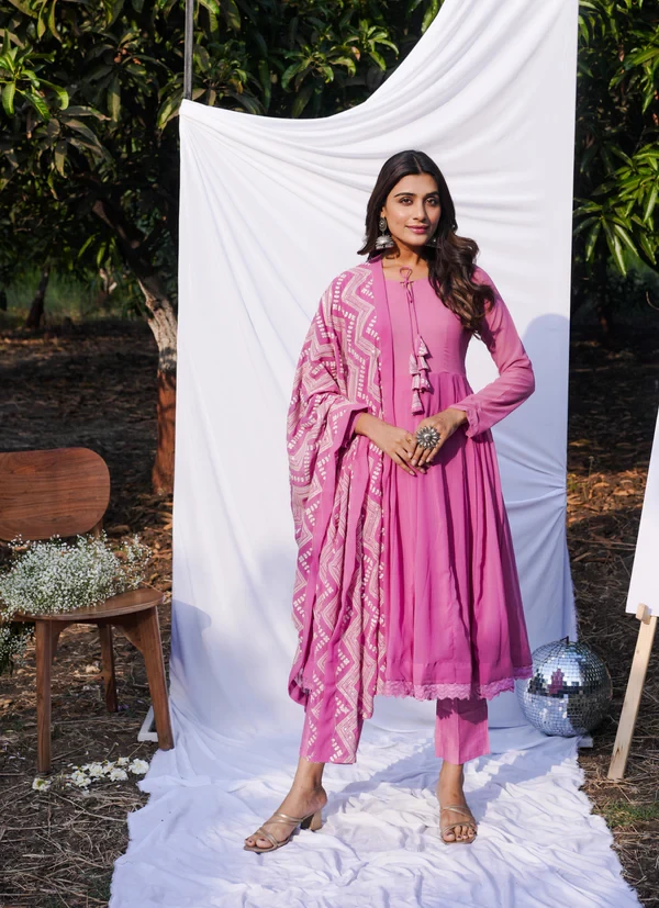 Anarkali Ethnic Floral Print Kurta & Trousers With Dupatta || 4JUBH9