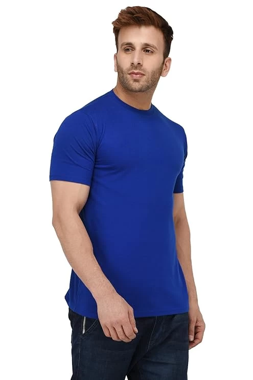 Solid Men's Round Neck Cotton Blend Half Sleeve Regular Fit T-Shirts || LH_457_R
