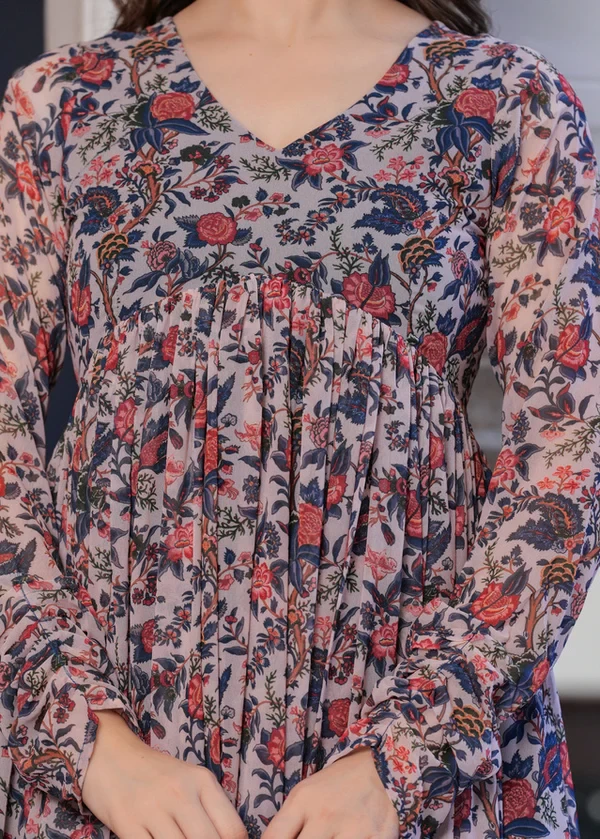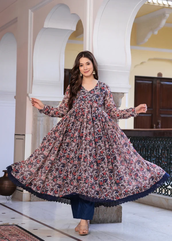 Anarkali Ethnic Floral Print Kurta & Trousers With Dupatta || 4JUBH9