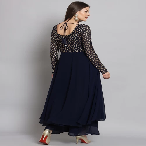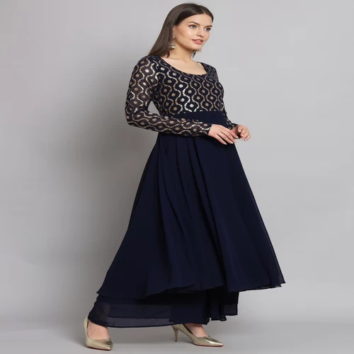 Women Blue Georgette Foil print Anarkali Kurta || EFBC47
