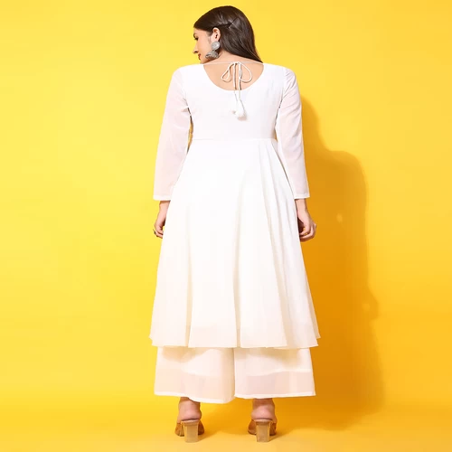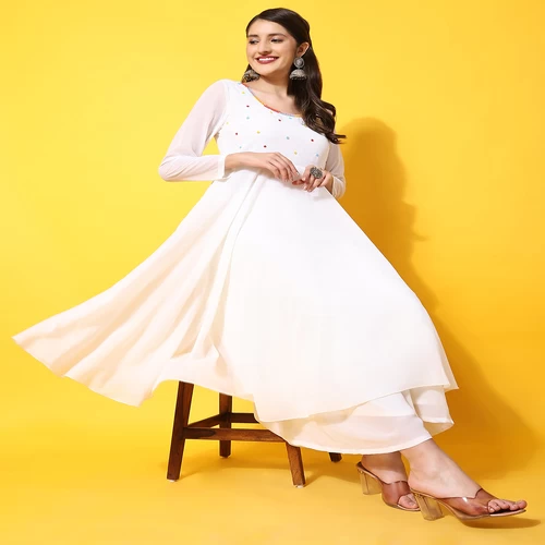 Women Off-White Georgette Hand Embroidery Anarkali Kurta || 38JMWH